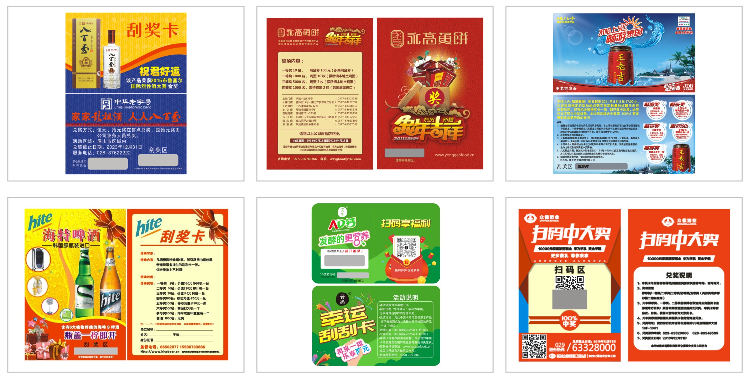 B.在刮刮卡方案设计环节应该充分考虑其对相应奖卡采取有效的防伪措施,在这方面,我司具有十几年的制作经验,可以为企业提供各种合适的防伪手段,防止市场上假冒刮刮卡的出现。